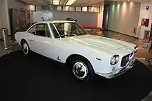 The Coupé was also designed by Pininfarina, and built by the coachbuilder. It was very similar to the Florida II prototype with a 2+2 layout. Like all other 2-door versions, the Coupé had a shortened wheelbase relative to the Berlina. The front end of the Coupé does not differ from the Berlina majorly, but the headlight frames are completely round, whereas they point slightly upwards in the saloon. The Coupe also fitted the unusual 175HR400 Pirelli Cinturato CA67 millimetric tyre. 5,236 Coupés (4,151 with the 2.5, 1,085 with the 2.8) were built until 1967.[2][3]