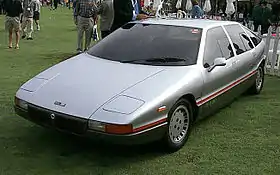 The Medusa was designed by Italian designer Giorgetto Giugiaro in 1979. Giugiaro designed the car to be as aerodynamic as possible, aiming for a target of 0.25 Cd, with the final design achieving a Cd of 0.263. The original the clay model reportedly had achieved a lower reading of 0.255 Cd, but the addition of side mirrors, indicator repeaters and a radiator caused it to go up.[2] The Medusa featured many design elements that were tailored to help it achieve better aerodynamics. Features such as pop up headlights, door handles and window glazing that sit flush with the body, inset turn signal repeaters and doors that wrapped up into the roof all helped the Medusa to be as aerodynamic as possible.[3]