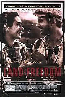 Land and Freedom (or Tierra y Libertad)[4] is a 1995 film directed by Ken Loach and written by Jim Allen. The film narrates the story of David Carr, an unemployed worker and member of the Communist Party of Great Britain, who decides to fight in the Spanish Civil War for the republicans, a coalition of Socialists, Communists and Anarchists against a nationalist coup d'etat. The film won the FIPRESCI International Critics Prize and the Prize of the Ecumenical Jury at the 1995 Cannes Film Festival.[5] The film was also nominated for the Palme d'Or at Cannes.