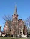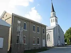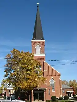 The Land of the Cross-Tipped Churches is a rural region in the western part of the U.S. state of Ohio, centered near Maria Stein in Mercer County. Its name is derived from the dense concentration of large Catholic churches that dominate the area's architecture. These and other buildings were constructed by the Society of the Most Precious Blood under the oversight of the missionary priest Francis de Sales Brunner. Under his leadership, the Society founded many churches and schools in the region, as well as several seminaries.
