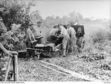 A 25-pounder of the 2/12th Australian Field Regiment shells the Kakakog area from the airstrip