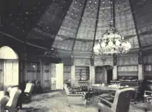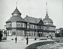 The first Langelinie Pavilion was built at Pinnebergs Reduit in 1884.[1] It was owned by De Forenede Bryggerrier but contained facilities for the Royal Danish Yacht Club. The building was designed by Vilhelm Dahlerup. Dahlerup was also the designer of a new footbridge, Gefion Bridge, which provided a link between the Gefion Fountain and the Langelinie Park across the access road from the south (now Ved Kongeporten). Later he also served as architect for the adjacent Free Port.