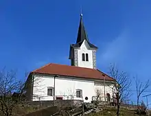 The local church is dedicated to Saint Ursula and belongs to the Parish of Škofljica. It is a 14th-century Gothic building. Fragments of early 15th- and 16th-century frescos are preserved on its interior walls.[5]