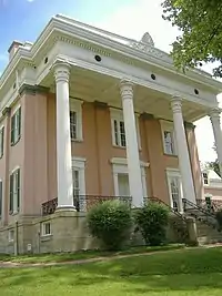 James Franklin Doughty Lanier was one of Madison's pioneers moving to the city in 1817 where he later practiced law. In the 1830s, he turned to banking and finance becoming the president of the Madison Branch of the State Bank of Indiana and a major investor in Indiana's first railroad. With his financial success, Lanier commissioned in 1840 prominent local architect Francis Costigan to design and build a residence for the sum of $25,000. Costigan designed the mansion in the Greek Revival style, popular in the mid 19th-century, drawing from the pattern books of New York architect Minard Lafever.[3] Construction of the house used materials that were manufactured nearby, or on the premises, including the brick, limestone and timber, largely tulip poplar, that was plentiful in the area.[4] The mansion was completed and occupied in 1844.[5]