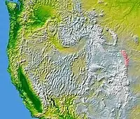 ![]() The Laramie Mountains are shown highlighted in pink on a map of the western U.S.