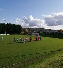 The club was founded in 1914.[2] They were in abeyance during the 1940s after losing use of the Plain Ham ground, but returned to footballing activity in 1951.[2] The club won the Somerset Junior Cup in 1962–63,[3] and joined the Somerset Senior League in the 1970s. The club won the League Cup in 1974–75 and the Somerset Senior Cup the following season.[4] In 1976 the Western League formed a new Division One, with Larkhall becoming founder members.[5] In 1988–89 they were Division One champions, but were unable to take promotion. They won the Somerset Senior Cup for a second time in 2003–04,[6] and after winning Division One again in 2008–09 the club were promoted to the Premier Division.[5]