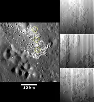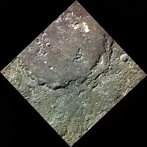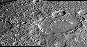 - ↑ Chapman, C. R., Baker, D. M. H., Barnouin, O. S., Fassett, C. I., Marchie, S., Merline, W. J., Ostrach, L. R., Prockter, L. M., and Strom, R. G., 2018. Impact Cratering of Mercury. In Mercury: The View After MESSENGER edited by Sean C. Solomon, Larry R. Nittler, and Brian J. Anderson. Cambridge Planetary Science. Chapter 9.