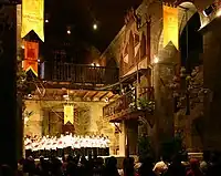 The choir also now acquired an official "choir-room" on the ground-floor of the old building which was replaced later by the 5-storey building. The location was the site of the present stage in the auditorium..