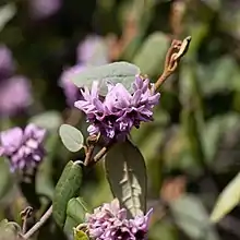 Lasiopetalum discolor, commonly known as coast velvet-bush,[2] is a species of flowering plant in the family Malvaceae and is endemic to coastal areas of southern Australia. It is an erect, spreading or sprawling shrub with hairy stems, oblong to egg-shaped leaves and pink or white flowers.