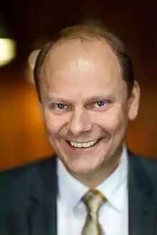 Lasse Granqvist was reported to the Swedish Broadcasting Authority for his commentating of the Sweden-Belarus game in the 2002 Winter Olympics. All complaints were later rejected.[3] Granqvist is famous for his quick commentary and the clarity of his voice. During a match between Sweden and Finland in the 2003 Men's World Ice Hockey Championships, he pronounced 118 words in 23 seconds.[2] When Sportextra celebrated its 50th anniversary in 2011 with a vote on the best sports quotes of all time, four of Granqvist's quotes was voted among the top seven.[8] Granqvist worked 25 years at Radiosporten – and 13 parallel years with both radio and television – before leaving the radio to work on television when he switched to C More Entertainment and TV4.[6] As of 2017, Granqvist has commentated 5 FIFA World Cups, 6 UEFA European Championships, 20 Ice Hockey World Championships, 6 Summer Olympic Games, 6 Winter Olympic Games and at least 120 international football fixtures.[9]