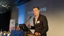 ![]() Lasse Schäfer at the party conference of the Party of Humanists in Lübeck. | |