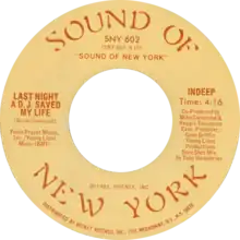 "Last Night a D.J. Saved My Life" is a song written by Michael Cleveland, sung by American group Indeep, and released as a single in 1982 by Sound of New York and Becket Records. It features vocals from Réjane "Reggie" Magloire and Rose Marie Ramsey. The track appears as the third track of the namesake album released in 1983.