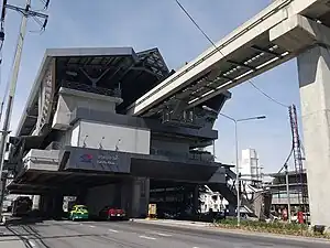 Lat Pla Khao station (Thai: สถานีลาดปลาเค้า) is a Bangkok MRT station on the Pink Line. The station is located on Ram Inthra Road, near Soi Ram Inthra 4 in Bang Khen district, Bangkok.[1] The station has four exits.[2] It opened on 21 November 2023 as part of trial operations on the entire Pink Line.[3][4]