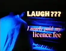 Laugh??? I Nearly Paid My Licence Fee was a 1984 BBC 2 sketch show starring Robbie Coltrane, John Sessions, Ron Bain and Louise Gold.[1][2] The programme, which was an experiment with a new format following the success of A Kick Up the Eighties,[3] ran for a single series of six episodes.[4]