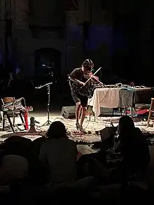 Ortman is a solo performer and collaborative artist.[4] Her practise includes recorded albums, live performances, film and artistic soundtracks. Ortman has collaborated with artists such as Nanobah Becker, Martin Bisi, Raven Chacon, Tony Conrad, Martha Colburn, Jeffery Gibson, Okkyung Lee, Caroline Monnet, and Jock Soto.[4] Ortman plays Apache style violin, piano, electric guitar, keyboards, pedal steel guitar, and sings.[4] She has produced field recordings.[4]