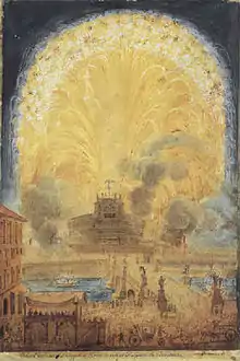 La girandola a Castel Sant' Angelo (Fireworks over the Castel Sant' Angelo, watercolour and pencil)