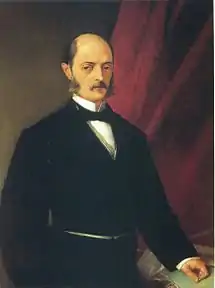 Laureano Figuerola y Ballester (4 July 1816, in Calaf – 28 February 1903, in Madrid) was a Spanish lawyer, economist and politician who served as the Ministro de Hacienda y Administraciones Públicas (now the Ministro de Economía, Industria y Competitividad) during the Sexenio Democrático. He is best known for officially establishing the peseta as Spain's currency.