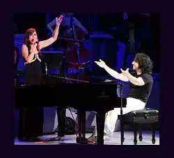 Since November 2010,[18] Jelencovich has performed as a lead vocalist on Yanni's international tours, which included performances in North and South America, Europe, Asia and Africa.[19] Jelencovich's vocals were included in three tracks from Yanni's live-concert CD and DVD Yanni Live at El Morro, Puerto Rico (released April 2012),[7][8] which was also broadcast in PBS television specials beginning in March 2012.[20] She also was the primary artist (soprano vocalist) for the "Nightingale" track to Yanni's 2014 Plácido Domingo-Ric Wake collaboration album, Inspirato,[9] and performed in Yanni's 2015 The Dream Concert: Live from the Great Pyramids of Egypt and in the resulting 2016 CD/DVD and PBS special.[21] On November 30, 2017, Jelencovich performed "Nightingale" in Jeddah, Saudi Arabia, Yanni later saying that Jelencovich was the first woman allowed to perform onstage in that nation without wearing the traditional veil,[22] and was the first woman in recent history to sing on stage for a mixed audience of men and women in that country.[23]