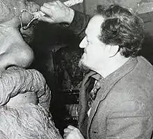 Laurence Bradshaw sculpting the bust for the Tomb of Karl Marx in Highgate Cemetery
