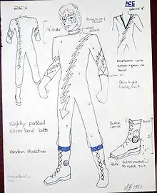 Photograph of design work by Laurie Greenan for stage costume for Ace Frehley of the rock band KISS worn 1981-1982