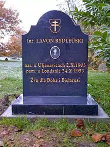 - ↑ Навумчык, Сяргей (27 November 2010). "У Лёндане аднавілі помнік на магіле Лявона Рыдлеўскага". Радыё Свабода (in Belarusian). Retrieved 2021-04-06.