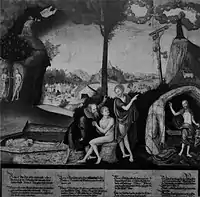 - ↑ Cranach digital archive, The Law and the Gospel 1500 - 1599, Inv. no. CZ_NGP_O9619