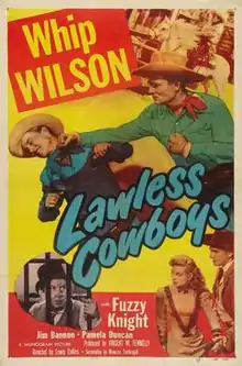 Lawless Cowboys is a 1951 American Western film directed by Lewis D. Collins and written by Maurice Tombragel. The film stars Whip Wilson, Fuzzy Knight, Jim Bannon, Lee Roberts, Pamela Duncan and I. Stanford Jolley. The film was released on November 7, 1951, by Monogram Pictures.[1][2][3]