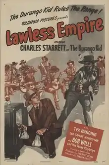 Lawless Empire is a 1945 American Western film directed by Vernon Keays and written by Bennett Cohen. The film stars Charles Starrett, Tex Harding, Dub Taylor, Mildred Law and Bob Wills. The film was released on November 15, 1945, by Columbia Pictures.[1][2][3]