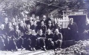 The adit was dug under the direction of Frank H. Probert, who had just previously been appointed Professor of Mining.[3] It was dug primarily for instructional purposes, with secondary hopes that it would represent a new source of water for the campus.[1][4] Much of the equipment to dig and use the tunnel was donated by the mining industry in the San Francisco Bay area.[4] Although an initial report said that it was to go 1,800 feet into the Berkeley Hills,[3] the actual construction resulted in a mine tunnel of about 200 feet.