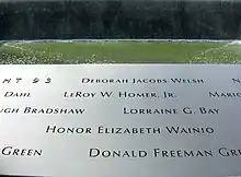 8. "South Pool: Panel S-67: LeRoy W. Homer Jr". Memorial Guide: National 9/11 Memorial. Archived from the original on July 27, 2013. Retrieved October 28, 2011.