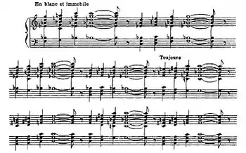 - ↑ Cocteau's claim appeared in the March 1, 1924 issue of La Revue musicale. Satie authority Robert Orledge suggested that this purported reminiscence should be treated with caution, as Cocteau had been "intent on establishing Satie's reputation and influence, largely at Debussy's expense." See Orledge, "Debussy and the Theatre", Cambridge University Press, 1982, pp. 45–46.