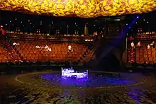 In 2008, a VIP seating area was added to the theater.[15] In 2015, an additional 172 fountains, 120 LED lighting fixtures, and 16 fire-shooting devices were added by WET Design.[4] Current capacity is 1,600 per show, not including an underwater SCUBA viewing area that is sometimes available for VIP guests.[16]