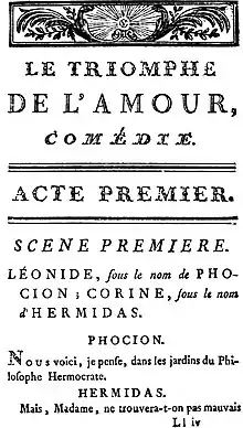 The Triumph of Love (French: Le Triomphe de l'amour) is a three-act French comic play by Pierre de Marivaux. It was first performed by the Théâtre Italien in Paris on 12 March 1732.[1]