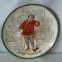"Le bon roi Dagobert" (French for "The good king Dagobert") is a French satirical anti-monarchical and anti-clerical song written around 1787.[1] It references two historical figures: the Merovingian king Dagobert I (c. 600–639) and his chief advisor, Saint Eligius (Éloi) (c. 588–660), the bishop of Noyon. The song is directed against Louis XVI and the ties maintained by the Catholic Church with the ancien régime, but it was used more broadly against monarchies in French history.