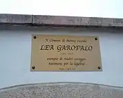 • 9 January 2016 the circle of Young Democrats of Crotone dedicated a commemorative plaque to Lea Garofalo, in the presence of Marisa Garofalo, Lea's sister;[25]