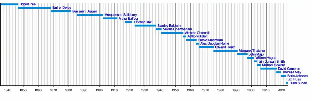 The leader of the Conservative Party (officially the leader of the Conservative and Unionist Party) is the highest position within the United Kingdom's Conservative Party. The current holder of the position is Rishi Sunak, who was elected to the position on 24 October 2022, following his unopposed victory in the party's leadership election.[1]