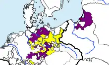 The Protestant League of Torgau (purple) and the Catholic League of Dessau (yellow) in northern Germany
