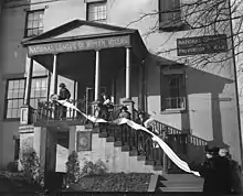 In 1921, the League was instrumental in passing the Sheppard-Towner Maternity and Infancy Protection Act, providing federal aid for maternal and child care programs.[2][14] In the 1930s, the League was supportive of New Deal programs such as Social Security and the Food and Drug Acts.[15][16] In 1945, the League advocated for the United Nations, the World Bank, and the International Monetary Fund, and was recognized by the UN as a permanent observer, giving it access to most meetings and relevant documentation.[17] [18] [19] [20] [21] [22][23] In the 1950s, League member Dorothy Kenyon was attacked as a Communist by Joseph McCarthy and president Percy Maxim Lee testified before Congress against Senator Joseph McCarthy's abuse of congressional investigative powers.[24] [25][26] In 1960, the League supported the Resources and Conservation Act of 1960 (S. 2549), beginning a long history of environmental engagement.[27] [28][29] In 1969, the League was one of the first organizations in the United States calling for normalizing relations with China.[30] [9]