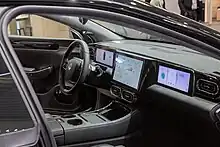 The interior of the C01 shares the T-type triple-screen design with the Leapmotor C11. The center screen is equipped with a built-in Qualcomm SA 8155P chip and measures 12.8 inches, while the instrumental screen and additional screens measure 10.25 inches.[2]
