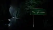 The “Leaving Storybrooke” city limits sign is displayed. The Seattle scenery is not featured.