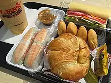 Lee's Sandwiches International, Inc., is a Vietnamese-American fast food restaurant chain headquartered in San Jose, California, with locations in several states and in Taiwan. Lee's Sandwiches specializes in bánh mì, "European-style" baguette sandwiches, Vietnamese iced coffee, and Vietnamese dessert chè.[6] It is credited with popularizing Vietnamese sandwiches and iced coffee among mainstream American consumers and inspiring several other Vietnamese-owned bakery chains.[7][8][9]