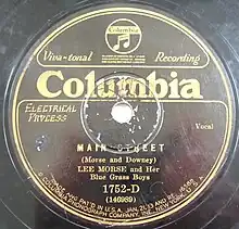 | 1928 | "Main Street" / "Susianna" | Columbia | 1752-D | With the Blue Grass Boys | [8] |