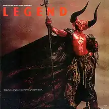 Legend is the twenty-eighth major release and the eighth soundtrack album by the German band Tangerine Dream. It was released in 1986 for the North American theatrical version of the film Legend. It was released in the USA and Canada only.[2] The film was written by William Hjortsberg, starred Tom Cruise, Mia Sara and Tim Curry, was produced by Arnon Milchan, directed by Ridley Scott and released domestically by Universal Studios.[3] The album was released on compact disc on 15 August 1995 through Varese Sarabande.