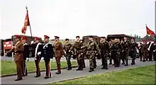 The regiment was formed by the amalgamation of the Leicestershire Yeomanry and the Derbyshire Yeomanry in 1957.[2] The regiment was re-roled as infantry in 1967, with four squadrons.[2] In 1969 it was reduced to a cadre.[2] The cadre paraded its Guidon at Catterick Garrison later that year and was expanded to squadron strength as the Leicestershire and Derbyshire (Prince Albert's Own) Yeomanry Squadron, 7th Battalion, the Royal Anglian Regiment in 1971.[2]