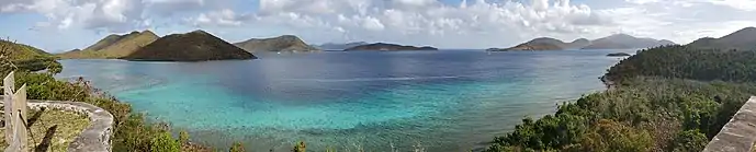 Leinster Bay is a bay and former sugar cane plantation on the island of Saint John in the United States Virgin Islands. It is uninhabited and part of Virgin Islands National Park. Visitors can park at Annaberg and hike the Leinster Bay trail to access the bay, which is a popular snorkeling spot. Waterlemon Cay is a small cay in Leinster Bay. The ruins of the plantation's estate house can be reached by continuing past the bay and up the Johnny Horn Trail.[1]