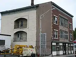 Leis Block is a historic commercial building located at Saranac Lake in the town of Harrietstown, Franklin County, New York. It was built in 1902 and is a three-story wood-frame structure. Renovations between 1910 and 1914 that added the current brick front, resulted in four full apartments, each containing a central inset sleeping porch. The storefronts once were occupied by Henry Leis's piano and music store and Earl Finegan's pharmacy. Henry Leis, who owned the block until his death in 1940, also built the Leis Cottage. The current structure has ten apartments and two storefronts.[2] The pharmacy at one time was named Terminal Pharmacy because it was the bus stop. Later it was renamed Hoffman Pharmacy.