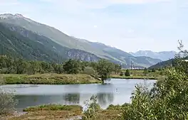 Lej da Gravatscha is an artificial lake next to the Inn River near Bever in the Upper Engadin, Grisons, Switzerland.
