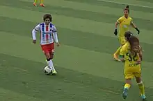 Lela Chichinadze (left) playing for Ataşehir Belediyespor in the 2015–16 season's home match against Kireçburnu Spor.