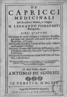 Leonardo Fioravanti (151788) was a noted doctor, surgeon and alchemist active in Italy in the 16th century.[1]