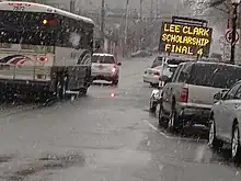 Sign along Broad Avenue for an annual scholarship dinner held in honor of former basketball coach Lee Clark.[78]